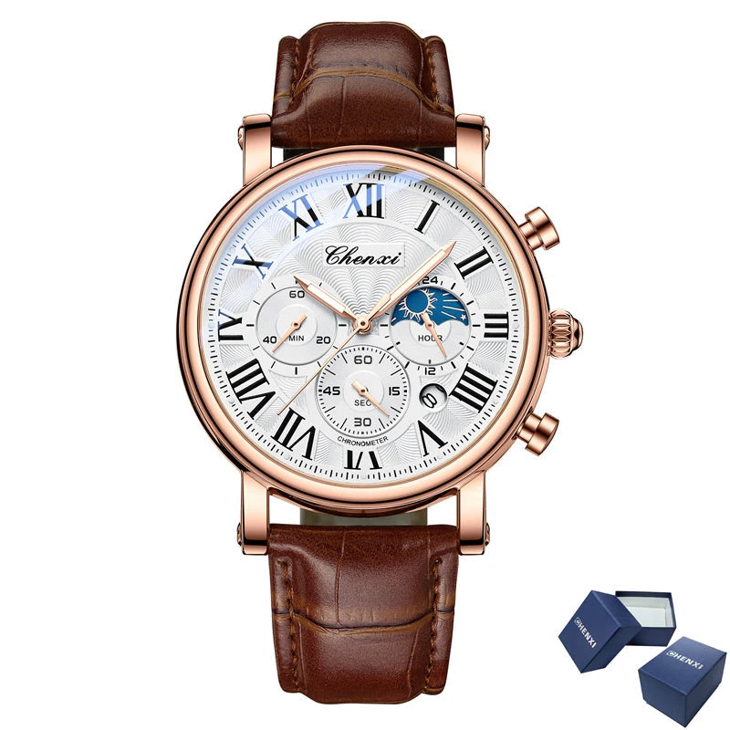 Monarch CHX MoonPhase Classic – Roman Quartz Leather Watch